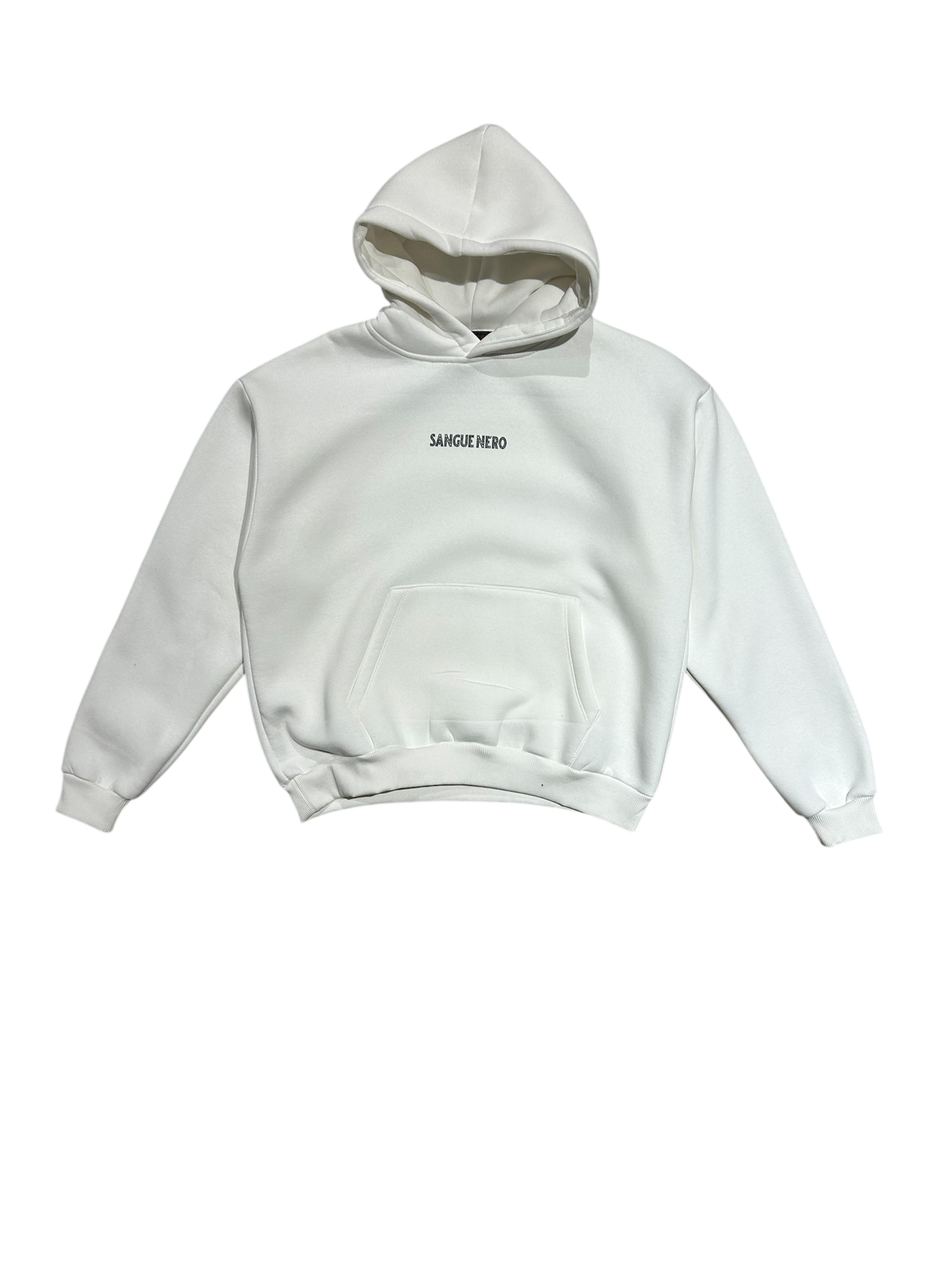 Hoodie baggy fit realizzata in cotone pesante bianco, pensata per uno stile street deciso e riconoscibile. Sul retro spicca la stampa “CHIAM’M 10 DIEGO” con numero 10 effetto strass, mentre sul fronte è presente il logo SANGUE NERO in versione minimal. Vestibilità ampia, cappuccio strutturato e tasca frontale a marsupio. Un capo statement che unisce calcio, strada e identità.